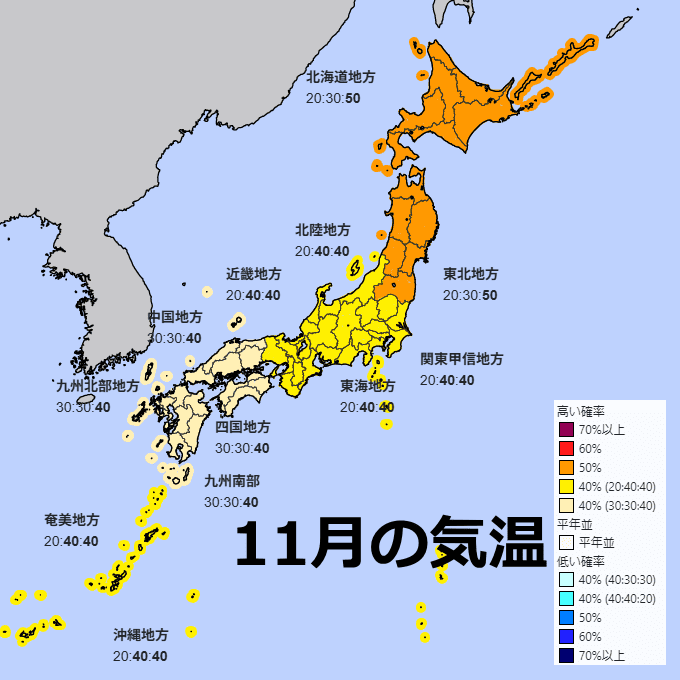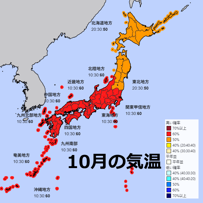 このページに掲載している数値・予想確率の元画像は、気象庁のデーターから出典した情報です。また表やグラフ等は数値を元に当サイトで作成。